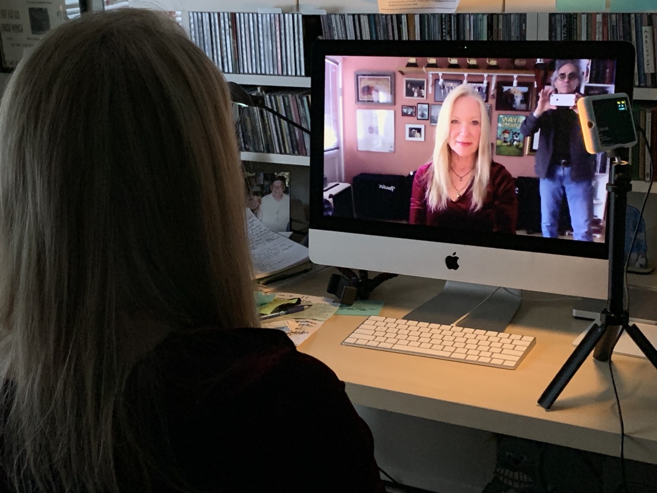 I experimented using the two totally different setups I normally use for broadcasts. The first was in my office with my desktop computer where I do Zoom interviews and music lessons. My office has various lighting challenges, including a picture window that can be an issue depending on the time of day, even with an adjustable blind. I experimented during the most challenging part of the day, when the sun is just starting to go down. It’s either too light and glare-y, too dark, or shadowy when the shade slats are adjusted. The Lume Cube Broadcast Lighting, with the diffuser and the settings on the lower end of brightness and light, smoothed everything out. I used the telescope stand (with the tripod base) on the side of my desk, to the right of my computer screen.