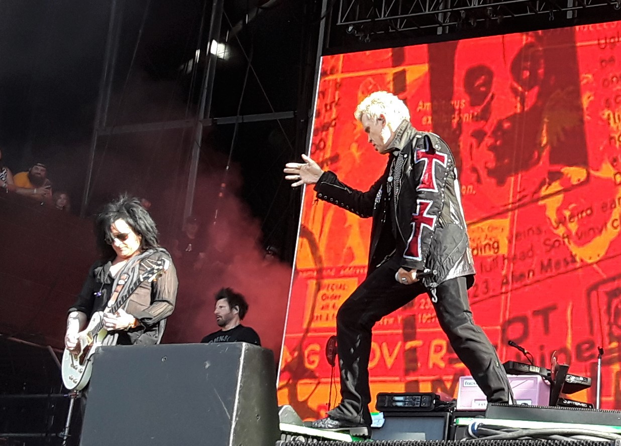 Billy Idol’s band arrived all British punk and attitude. Idol’s hair may be legitimately gray now, but the hardworking, hard-living rocker looks as good as ever, and continues to challenge the prevailing music establishment just by being himself—along with his posse, including guitarists John Conte and Billy Morrison, whose I-don’t-give-a-fuck attitude toward anything other than music compliments Idol’s own ethos like stars in a night sky. Starting off with “Shock To the System,” Idol screamed, the guitars screamed, the audience screamed, and none of them stopped until the last songs, which of course included “White Wedding.” Kudos to the whole band for knowing the importance of visuals. With a decidedly un-PC cigarette dangling from his lips, John Conte Grabbing his crotch, Idol made sure everyone knew what the lyrics to “Dancing With Myself” really meant, and later in the show, sweating from the workout, took off his shirt, a move which may or may not have sparked a significant brawl out in the audience. That’s rock and roll, baby. Deal with it.