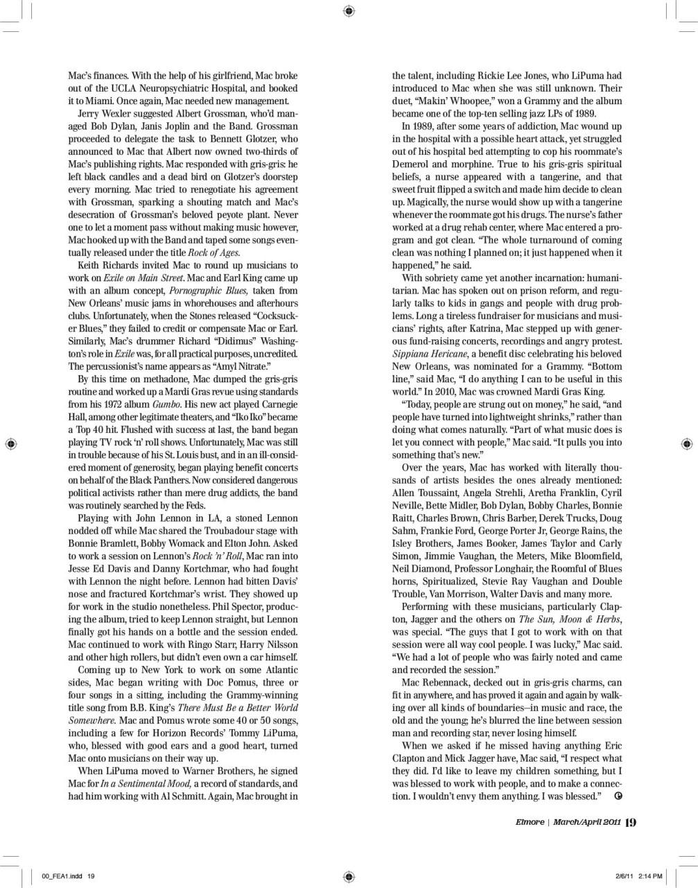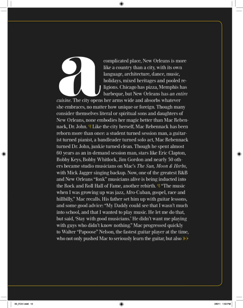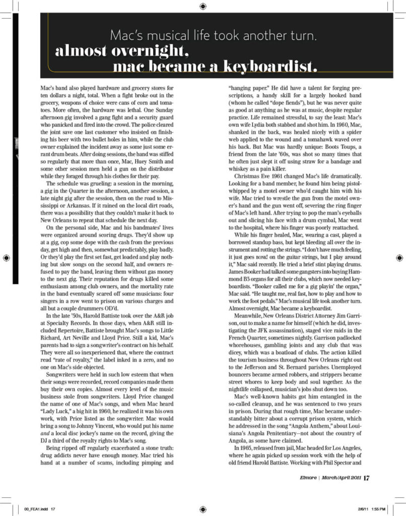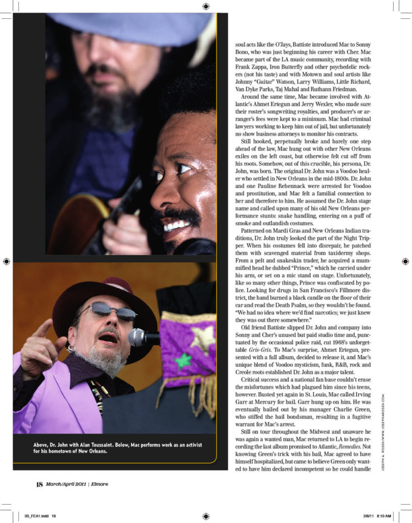 Mac Rebennack, known as Dr. John, remained one of the most unique characters in—or out—of music. With his wild ways and signature songs, his story sounds like myth, but isn’t. Read our 2011 cover story of the man who said “God looks out for chumps and assholes. That’s what makes life interesting.”