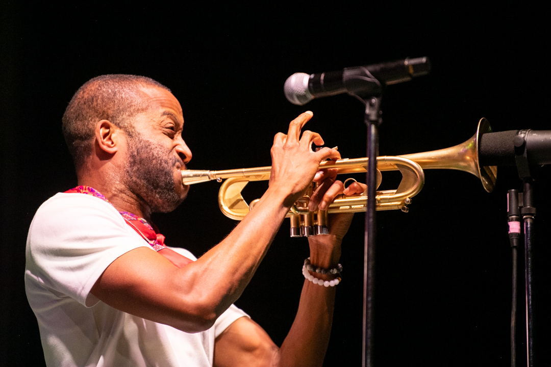 Trombone Shorty shows start with the energy and volume that characterize most acts’ closing tunes, and they keep the action going for about 90 minutes. Trombone Shorty came onstage to a blast of Richard Strauss, the theme from 2001: A Space Odyssey, and built from there, if you can imagine.
